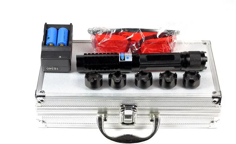 High Powerful Blue Laser Pointer Laser Pen Adjustable Focus Burn Match 2x16340 + AC Charger + New Packing Box