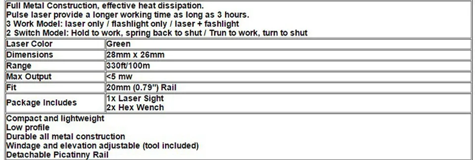 On-time Delivery: If you do not receive your purchase within 60 days, you can ask for a full refund before order completion (when you click "Confirm Order Received" or exceed confirmation timeframe).Fantastic Sale Tactical Green Laser Sight with LED Flashlight 2 in 1 Combo with 20mm Picatinny Rail Weaver for Glock 17 Hunting